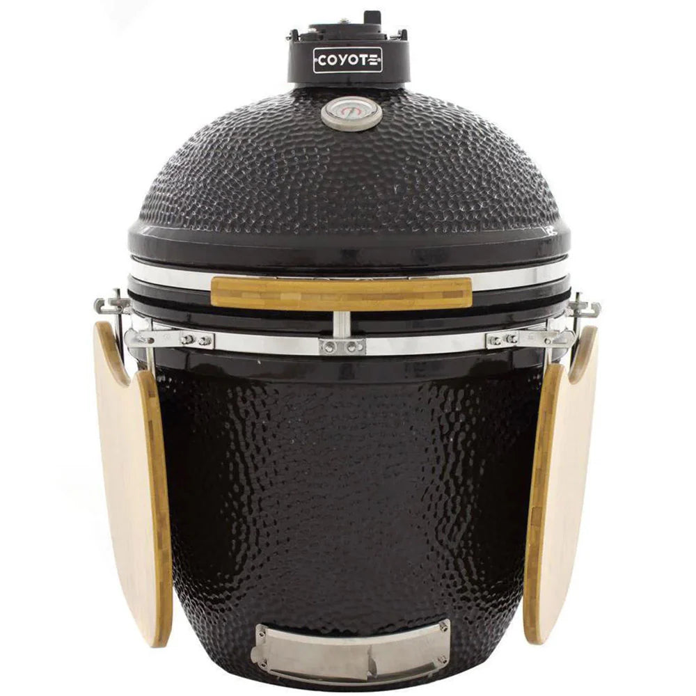 Designed for outdoor cooking enthusiasts who appreciate the flavor of charcoal grilling, the Asado grill from Coyote is a kamado-style grill that can grill, smoke or sear with ease. This grill is constructed from high grade ceramics which offer excellent heat retention, allowing you to cook at consistent temperatures for hours on end. The Asado grill offers 254 square inches of cooking area on a stainless steel grate. A dual-vent airflow system allows for precise control of cooking temperatures that can range from a smoking low, to a steak-searing high, maintaining temperatures for hours and requiring less fire tending than traditional smokers. Easily keep track of cooking temperatures with the integrated thermometer. This kamado grill includes an ash tool, ceramic feet for built-in installations, and touch-up paint.