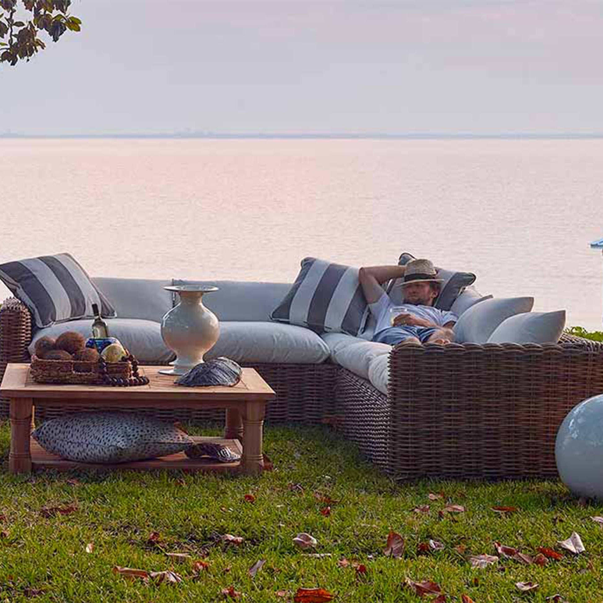 Sink into the cloud-like comfort of the Montecito collection that features oversized proportions that add to this collections’ intriguing aesthetic design. Inspired by the art of hand woven basketry, the large wicker weave offers a relaxed look and feel to this low, linear profile frame. Our plush, ultra-dense, Trillium Cloud cushion offers optimal comfort as it mimics the characteristics of natural down, but is entirely hypoallergenic. Montecito is finished in our UV resistant, N-Dura resin wicker for a worry-free experience with the look of natural materials.